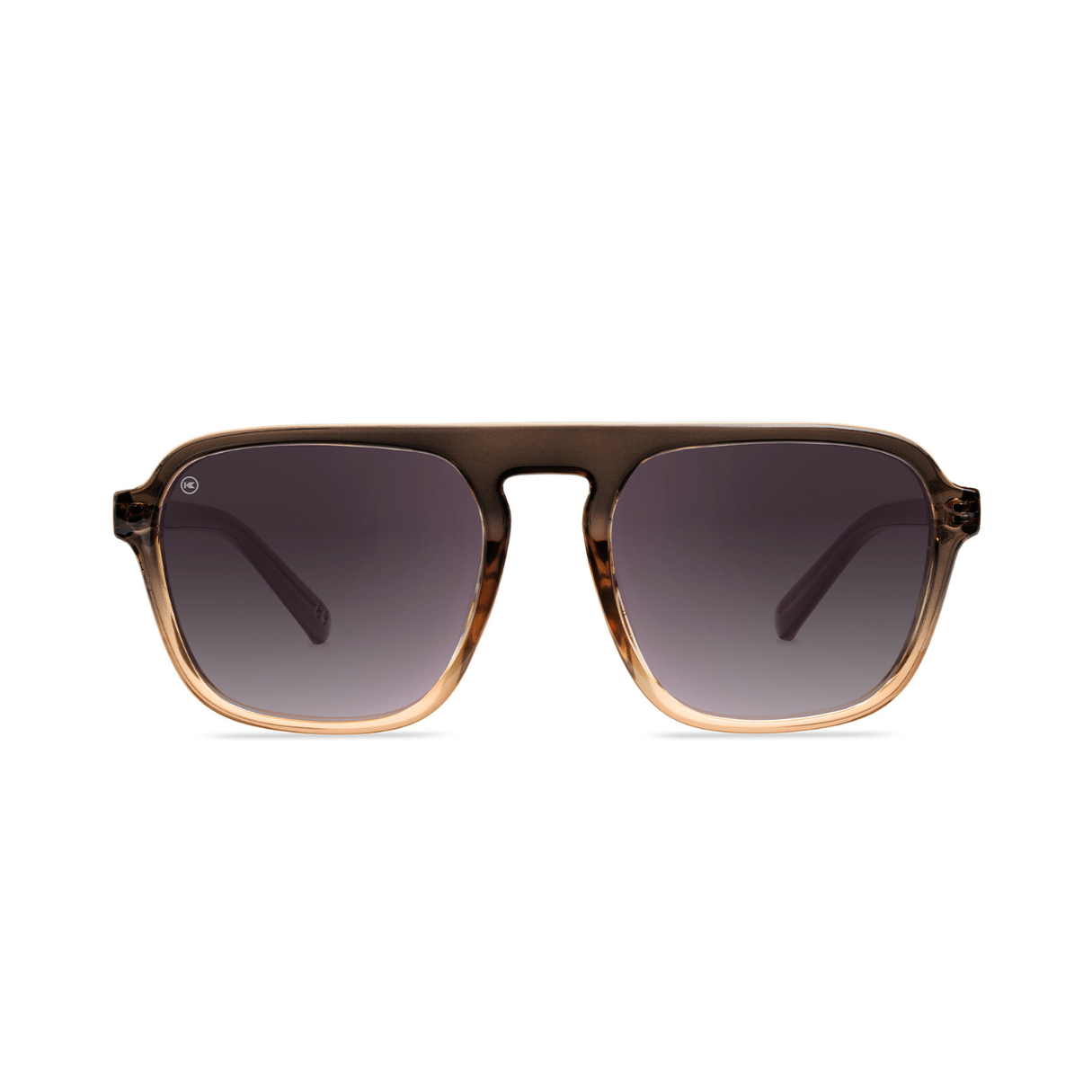 Our Cortado Pacific Palisades sunglasses are here to steal the show from competitors. Picture an aviator front that cascades from smoky amber to transparent cool muted-brown, plus arms boasting an identical color profile inside and out. Polarized smoke gradient lenses protect your eyes from the sun and humans derailing your day. And who could forget about the gold K that pulls no punches about declaring your favorite sunglasses? We know that podium position has your name on it.