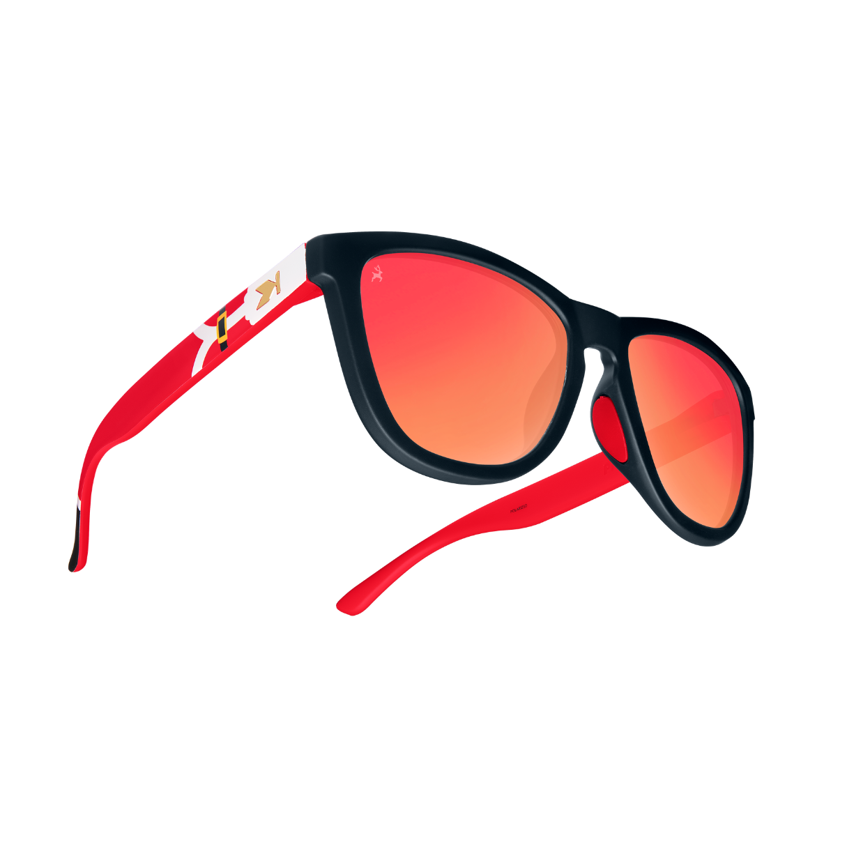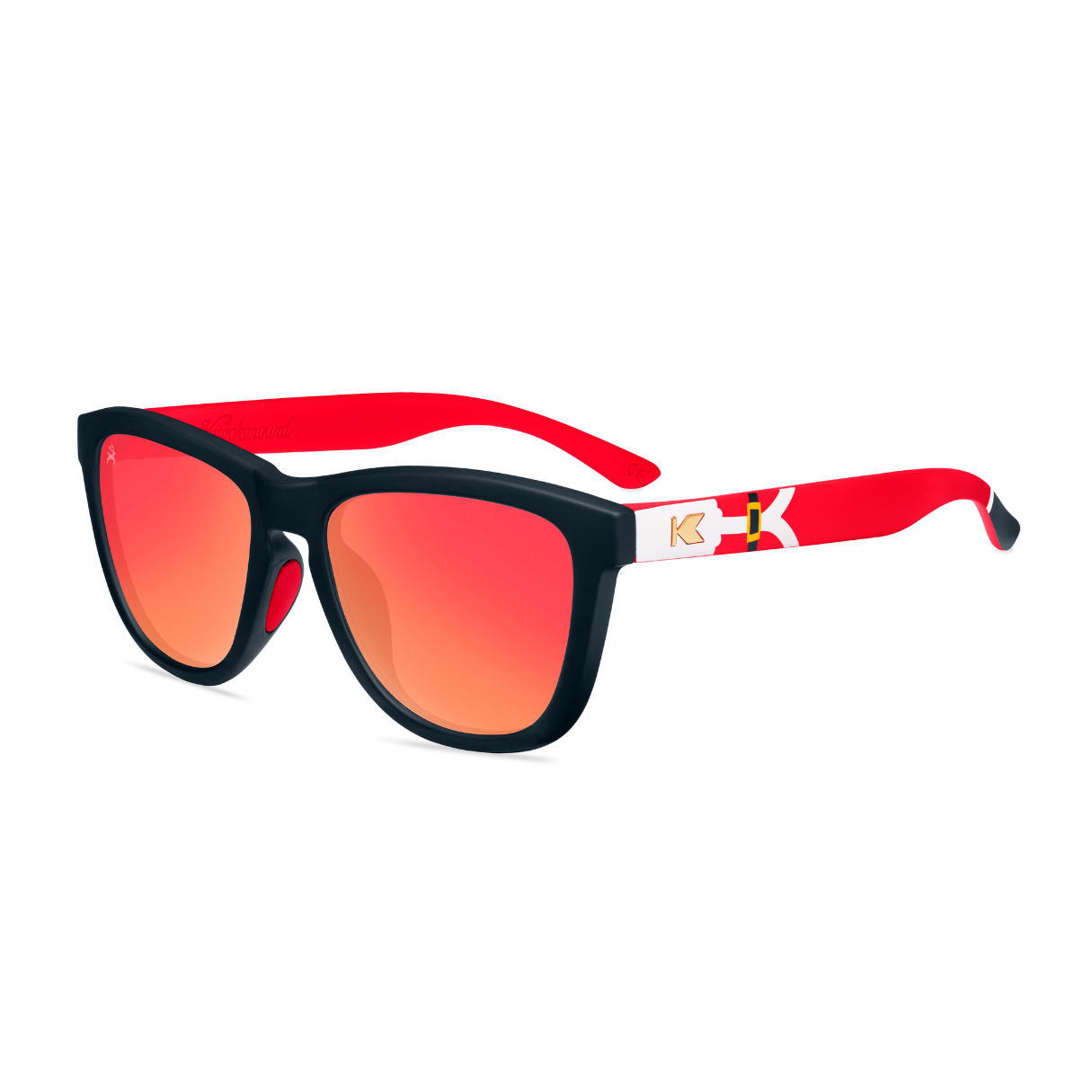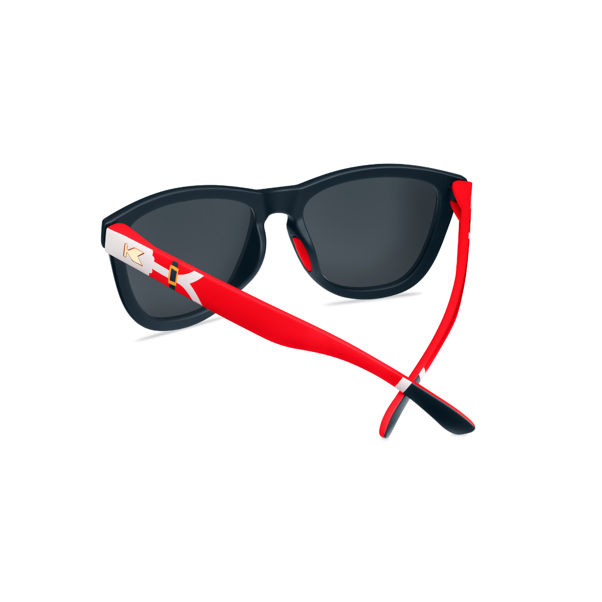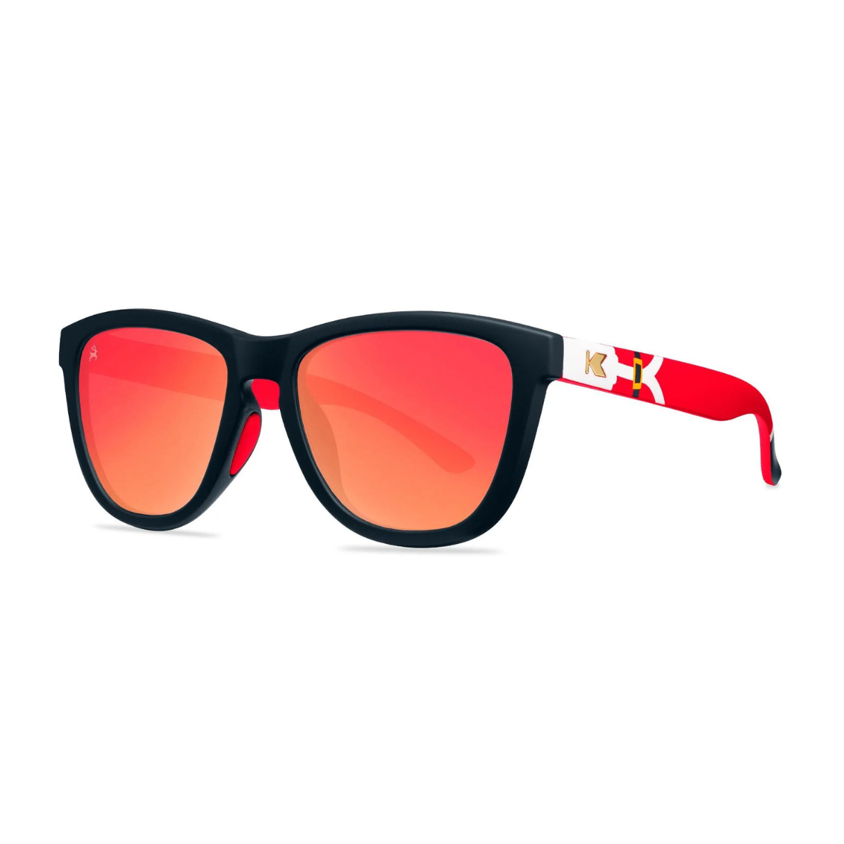 Did you hear that jingling just now? It’s an urgent SOS from the North Pole, and it sounds like Santa needs you to cover for him with our Santa Claus Premiums Sport sunglasses! Black fronts with festive red moonshine lenses allow you to hide in plain sight, so you can get all the intel from would-be recipients. Meanwhile, flashy gold ‘K’ logos and cheeky Santa details are on hand to spoil your ruse when the time is right. Bonus: easily gift them to anyone who needs a little holiday spirit with the built-in festive packaging and consider your nice list sorted.